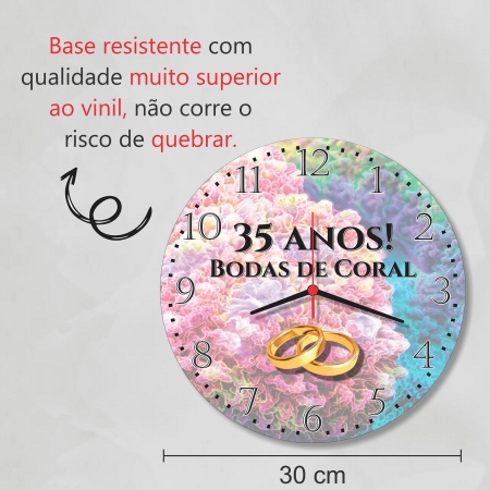 • Relógio Parede Bodas de Coral 35 Anos Casamento Presente 30cm