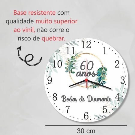 • Relógio Parede Bodas de Diamante 60 Anos Casamento Presente 30cm