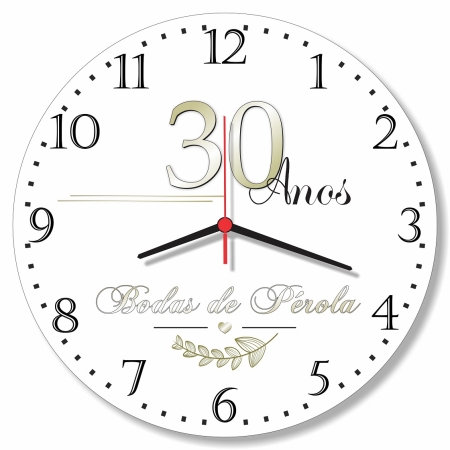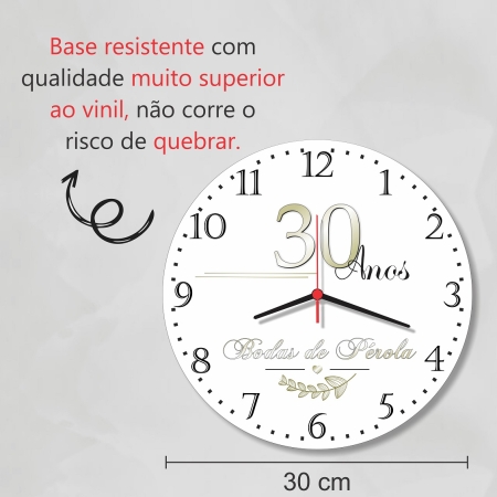 • Relógio Parede Bodas de Perolas 30 Anos Casamento Presente 30cm