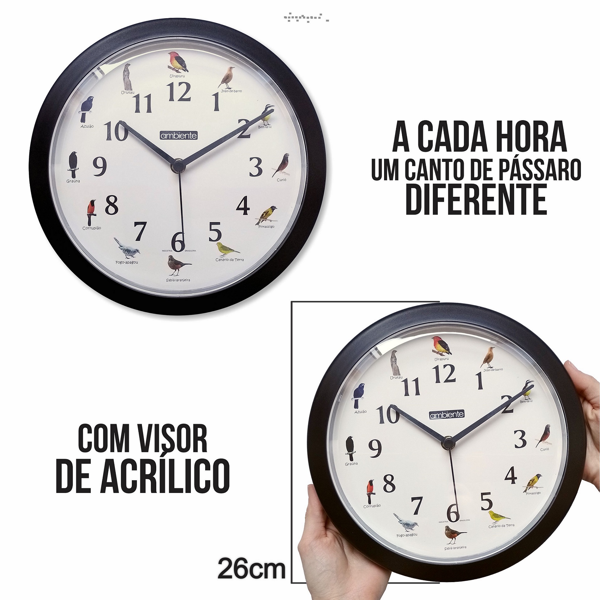 Encantador, a cada hora um canto de pássaro diferente, os apaixonados pela beleza dos pássaros irão amar este relógio.